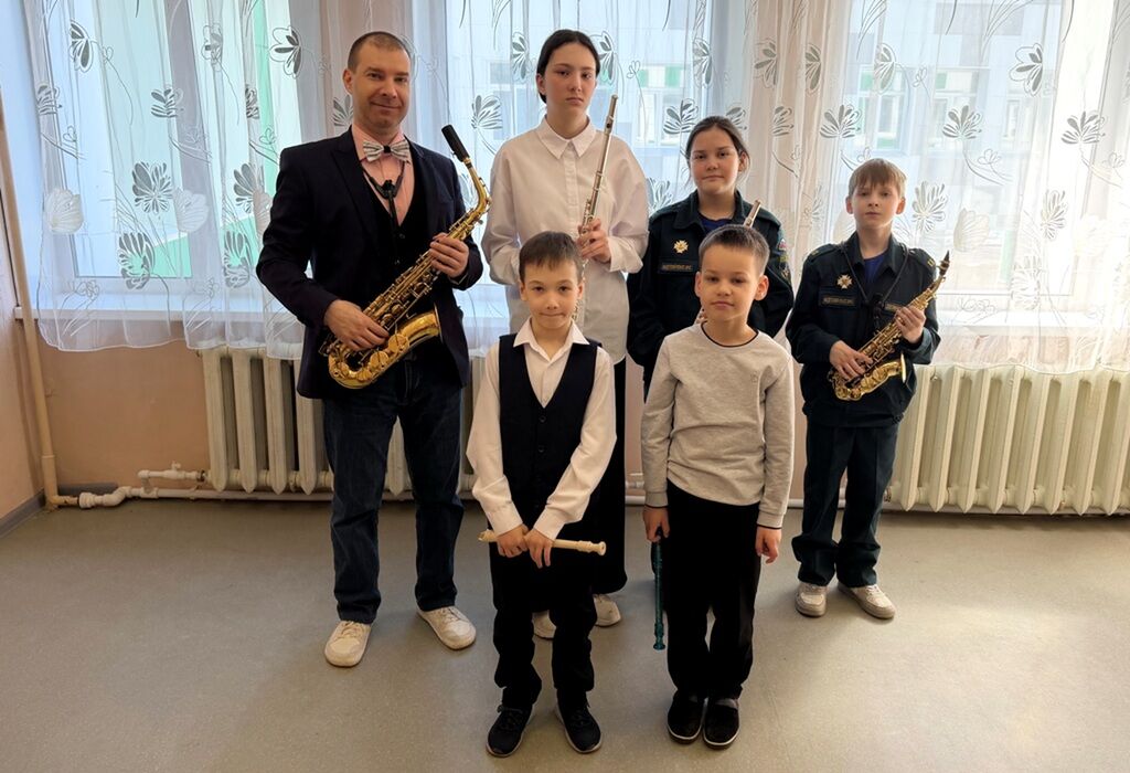 Юные слушатели познакомились и услышали звучание деревянных духовых инструментов, таких как блокфлейта, флейта и саксофон (сопрано и альт).